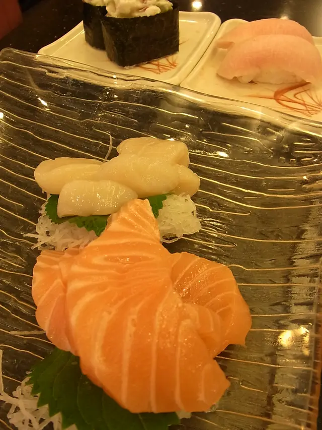 sashmi is better than sushi surely not about price only, I was disappointed by the soft seaweed though the taste is not badsalmon is in thick cut ($45) while the mini-scallop taste sweet too