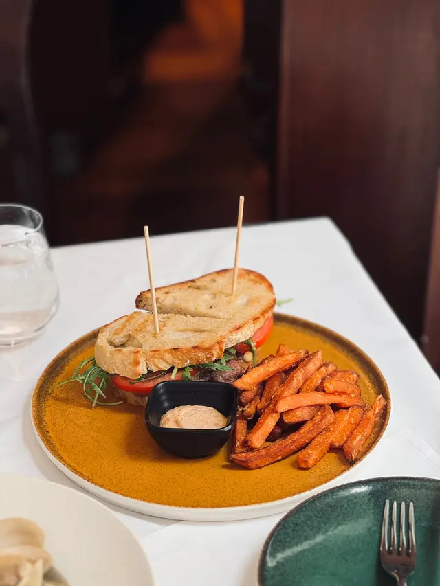 意式烤牛肉三文治睇落已經好吸引😏,酸種麵包脆口👄,包住芝麻菜沙律🥗、蒜茄🍅、芥末,當然仲有重點烤牛肉🐃煙韌又 juicy;sides 有番薯條🍠,整個 combo 太邪惡了🚧~