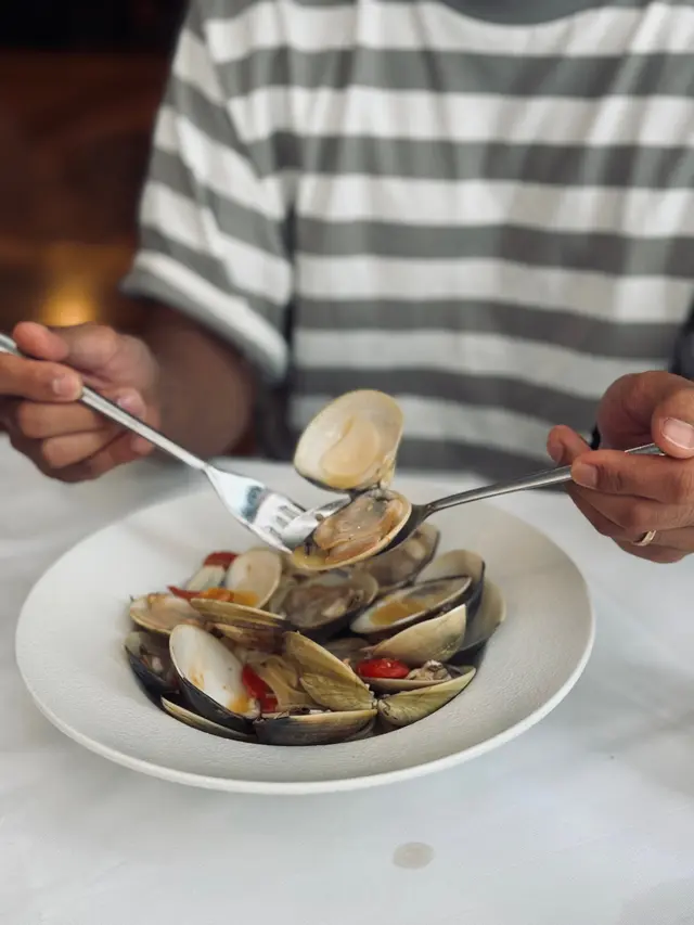 主菜五揀二☘️,蜆肉扁意粉彈性十足🍝,蜆肉大大隻好鮮味😝,意粉加入蒜、羅勒、辣椒、白酒,香口又有層次💭,可以話係必點呀!