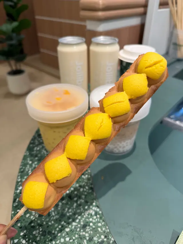 新出的特色面煎糕串,係新加坡特產X香港口味,我點咗咖央醬面煎糕串加茶記菠蘿包皮,有套餐加8蚊配微甜濃豆乳,食落似香港的雞蛋仔,裡面加咖央醬,面頭有脆脆菠蘿包皮,唔太甜幾好味😋