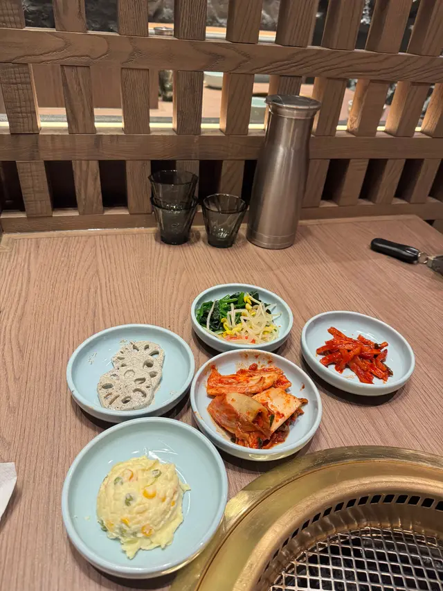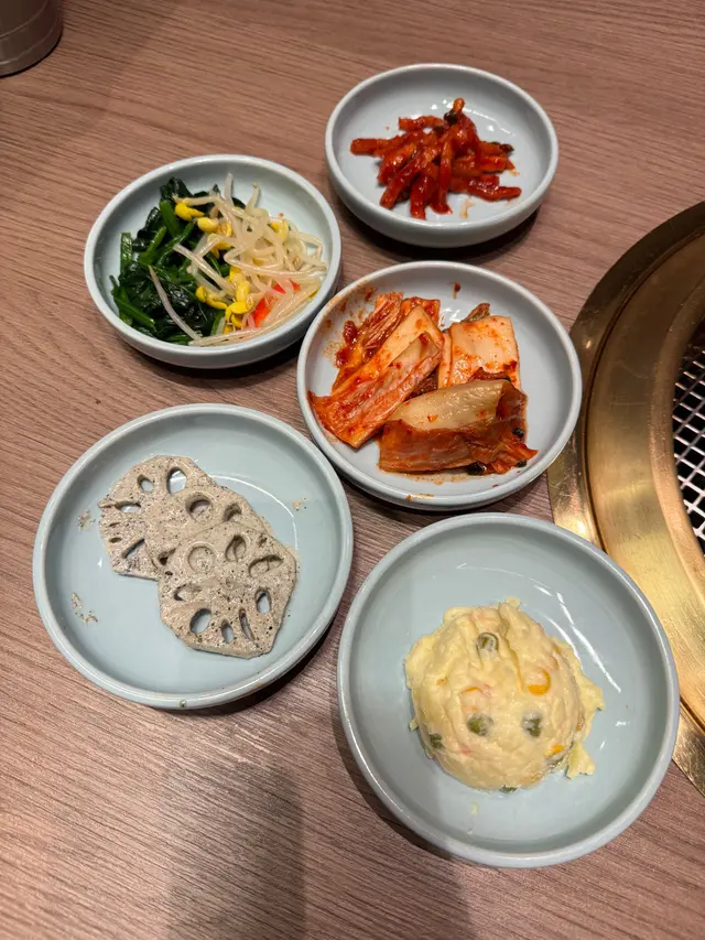 5款前菜第一輪是免費的,如果加$40就可無限添加了,5款前菜分別有薯仔沙律,2款泡菜,芝麻醬蓮藕,芽菜拼青菜,食完更開胃。
