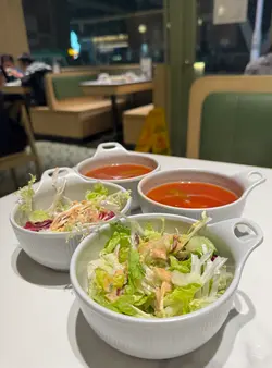 主菜加錢配是日餐湯沙律及甜品($21),是日餐湯是羅宋湯,味道非常濃郁,啖啖充滿酸香,越喝越醒胃。內有甘荀、西芹、椰菜等蔬菜,湯料豐富,味道美味。