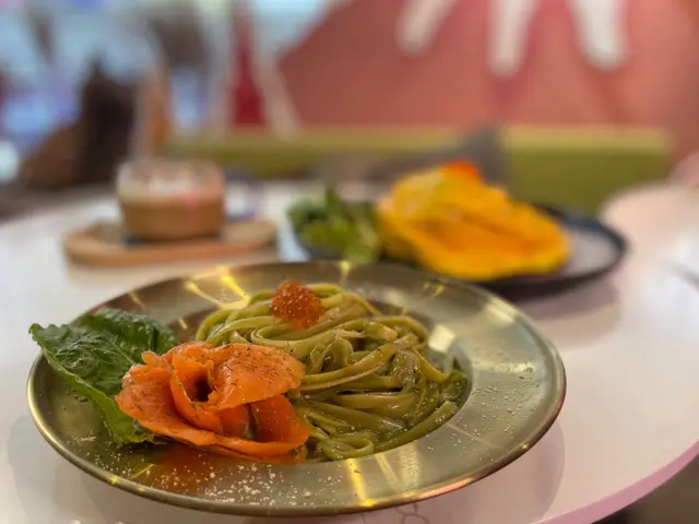 食物方面走日式一點都唔馬虎,三文魚親子綠茶忌廉意粉($88)抹茶白汁好特別,濃濃的抹茶口味好甘甜同三文魚子好夾,麵好彈牙非常不錯,同凍咗一樣好好食抹茶味反而更加出!驚喜🤩