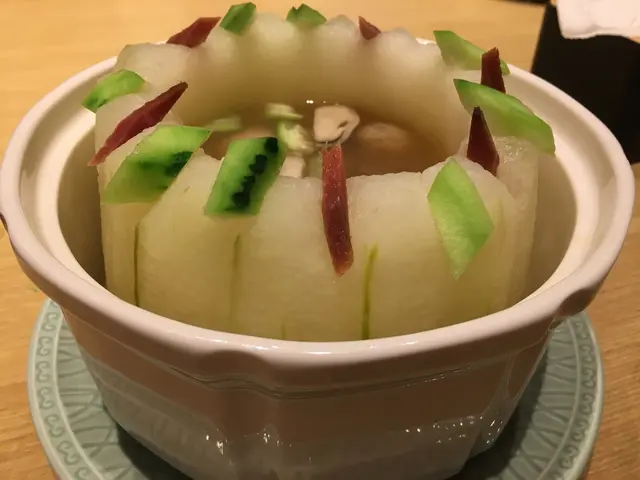 夏天能吃一個時令冬瓜盅,真是能火氣全消。這個百樂特色冬瓜盅,既足料,又清甜,湯中滿是材料及冬瓜的精粹。冬瓜盅的火候適中,冬瓜不會煮得太久,也不會太硬,軟硬恰到好處。