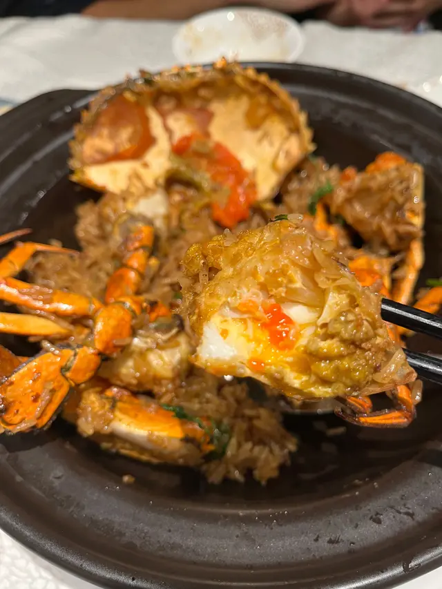 💯原隻蟹勁多膏, 蟹肉鮮甜, 蟹膏甘香, 糯米飯煙韌同時粒粒分明; 餐廳有提供蟹夾, 輕輕夾開就起晒肉