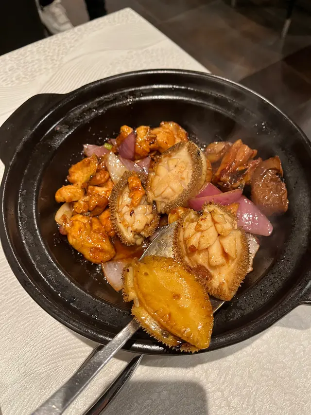 ✨四大隻鮑魚有戒左十字超級入味, 質地彈牙, 一齊炒既洋蔥同椒都好腍, 直接令個煲更香
