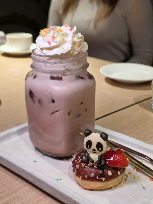 餐後可以來份園方特意為兩隻本港出生熊貓而調製的熊貓朱古力冬甩配凍朱古力($62