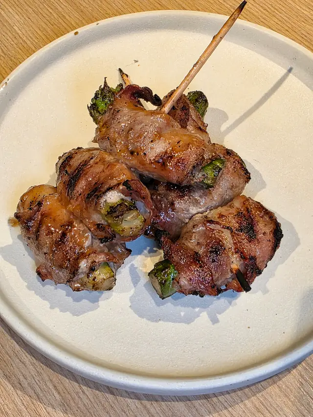 五花腩烤至油香四溢,內裡的蘆筍脆嫩,塗上了味噌更加美味。