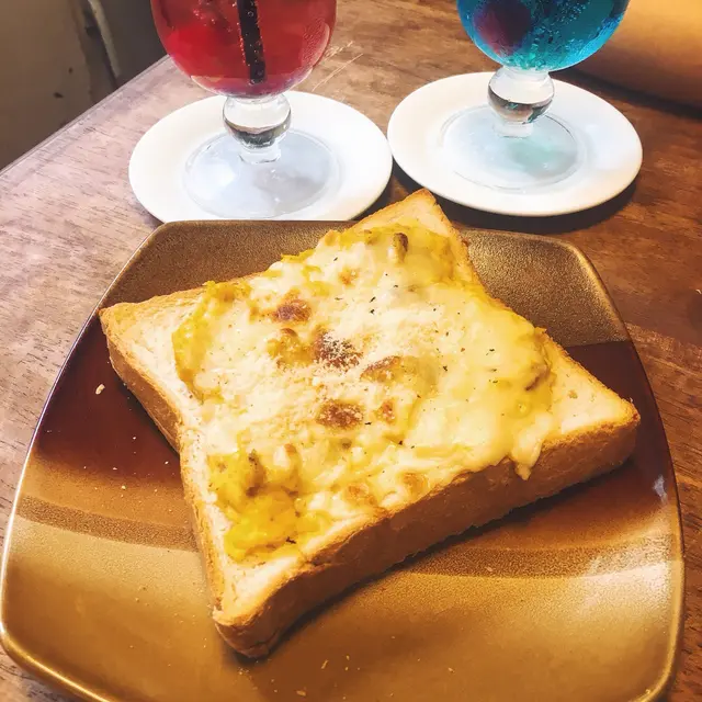 鬆軟的吐司底上面鋪上香甜的玉米和南瓜泥,再加上芝士雞肉的鹹香味~好好吃😋