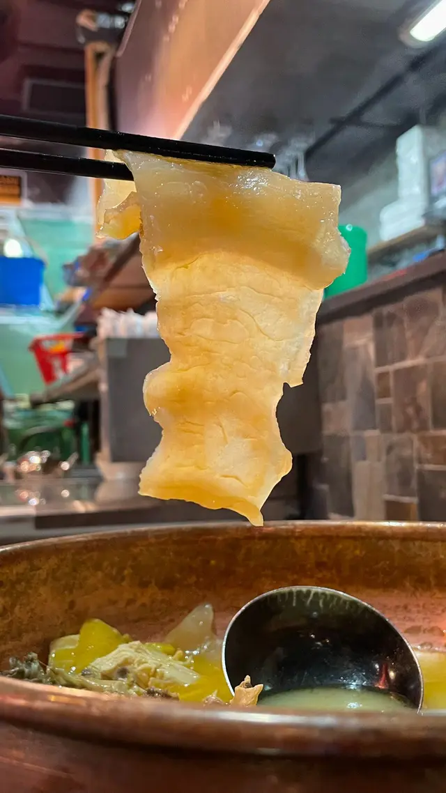 湯一滾起,忍唔住即刻舀咗碗湯試下。嘩!一啖飲落去,個湯底濃到黏嘴唇,雞嘅鮮甜同金華火腿嘅鹹香完美融合,味道層次豐富到不得了。每一啖都係骨膠原嘅感覺,滋潤到不得了,飲完成個身暖笠笠,真係忍唔住一口氣飲咗三碗!