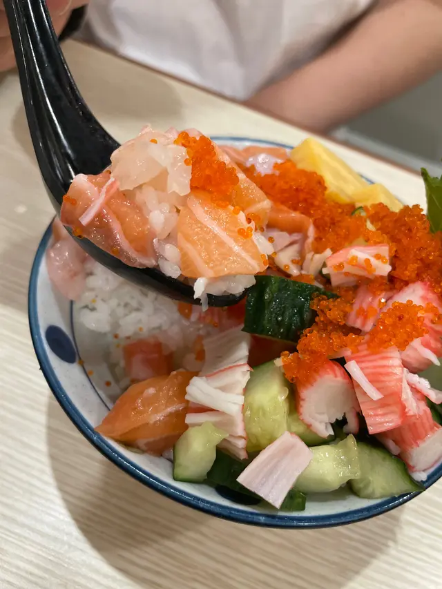 滿滿嘅材料價錢亦十分實惠,內有三文魚、甜蝦、魷魚、青瓜、蟹子、蟹柳、玉子,一啖已經充滿豐富口感。