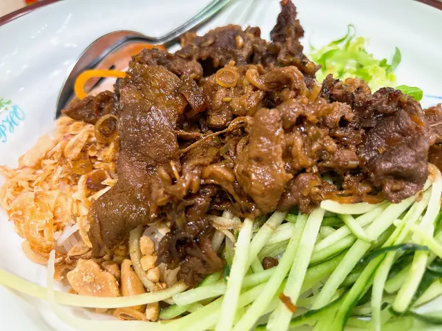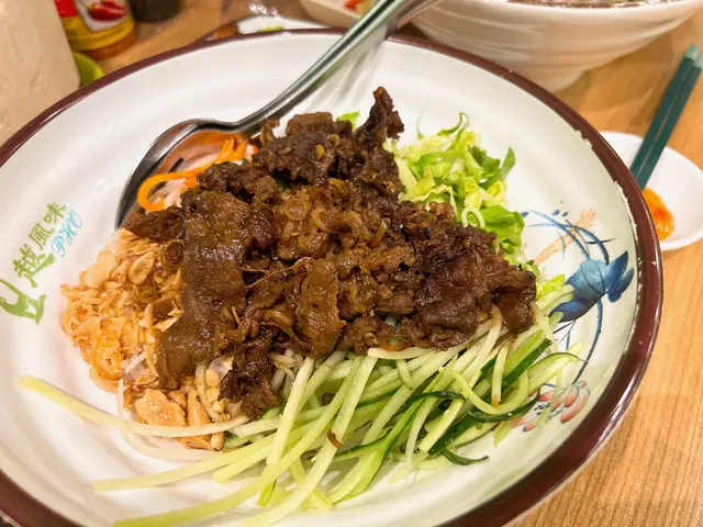 燒牛肉嘅醬汁味道好濃,唔使落撈檬醬汁成碗嘢都已經好夠味。最欣賞係花生同埋炸蒜片嘅份量好足夠,再加埋生菜絲,同埋其他蔬菜,所以食落去淡淡都有唔同口感。