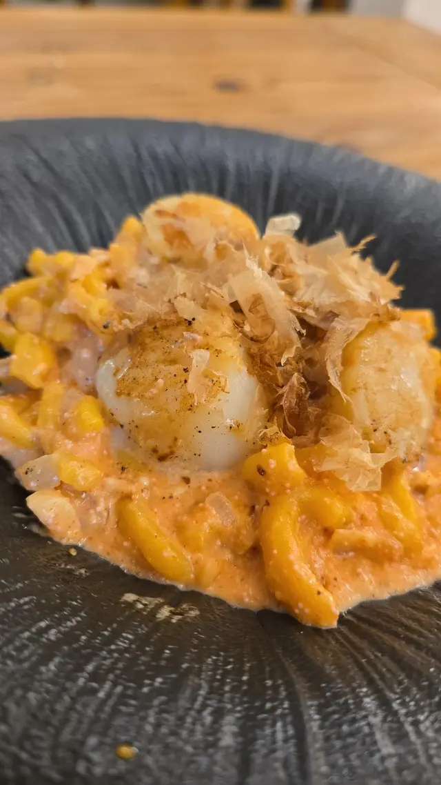 帶子煎得岩岩好,手捲粉彈性非常好,咬落煙韌,掛汁一流,配合帶蒜辣嘅明太子醬,食到停唔到口。