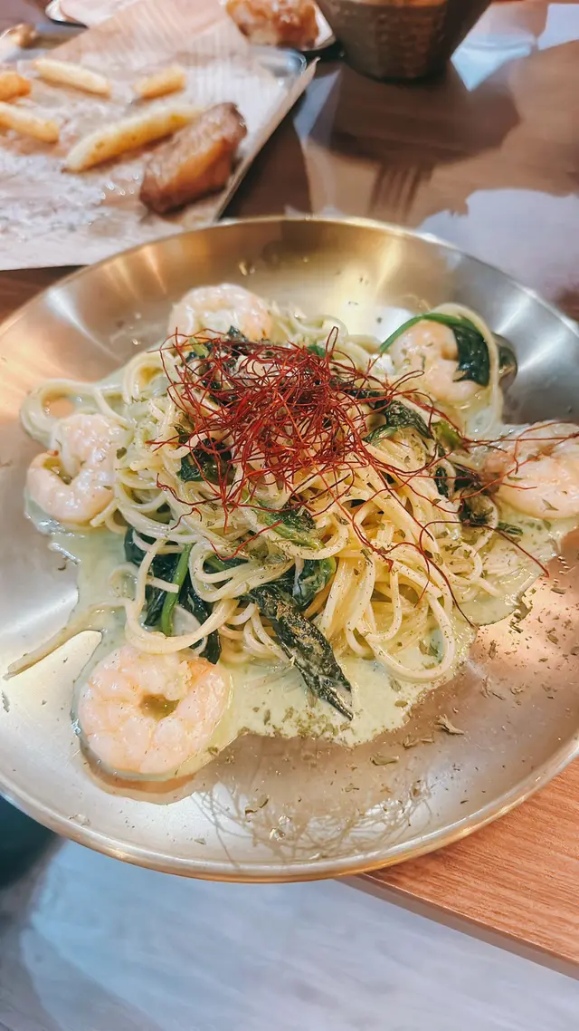 香蒜蝦菠菜忌廉汁意粉🍝