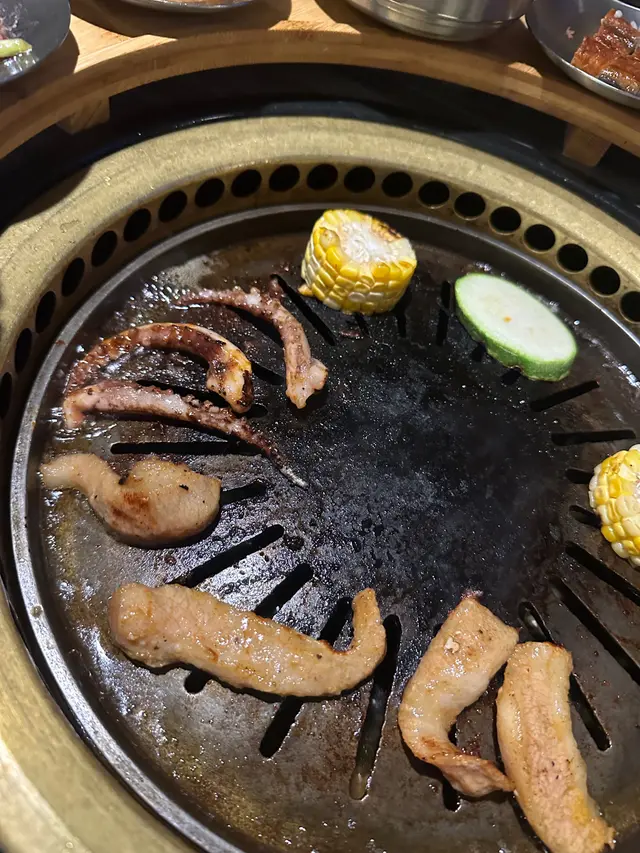 燒肉種類很多,職員會陸續送上唔同種類嘅牛,豬,雞,圍住左成個爐,打卡able 😆