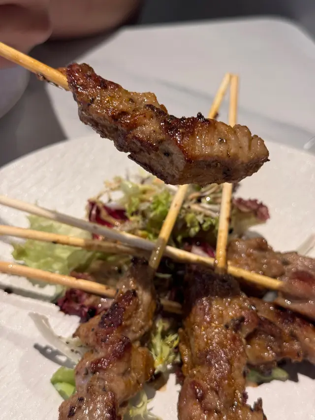 全晚最驚喜係呢個串燒豬肉,一上枱已經聞到勁香嘅秘製調味,伴咗少少沙律菜,豬肉咬開多汁肉嫩,又夠腍