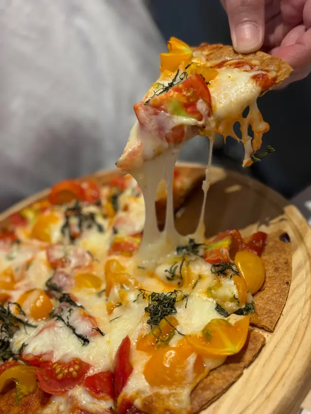 呢度嘅Pizza餅底係非常薄同埋好脆,啱晒鍾意食薄批嘅朋友,鋪滿車厘茄,羅勒同mozzarella芝士,車厘茄好鮮甜,加埋啲芝士好夠咸香