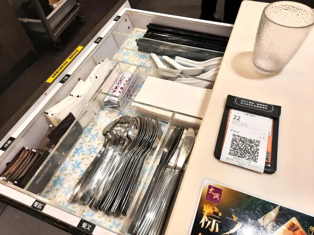 枱側抽櫃,就擺齊晒啲餐具、餐紙,茶記嘅慣常設定。