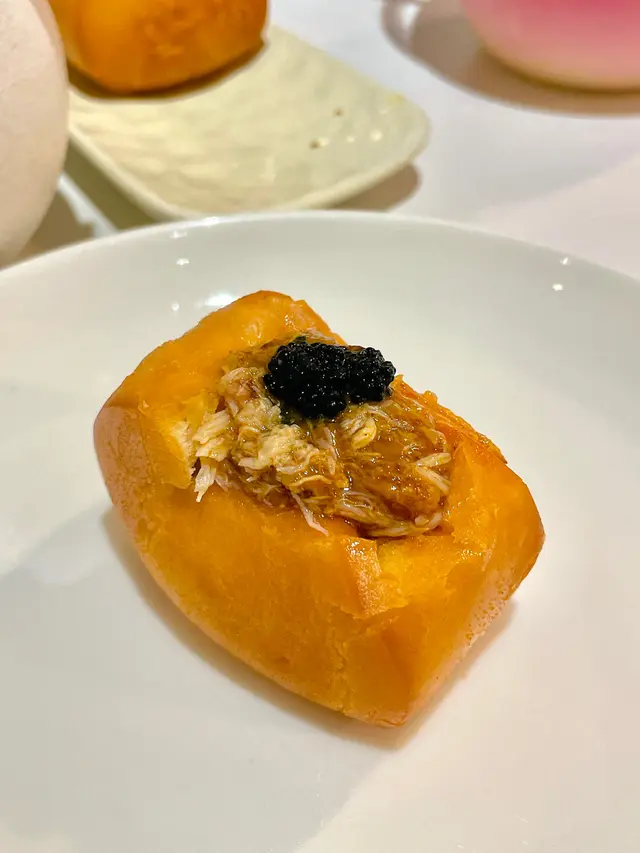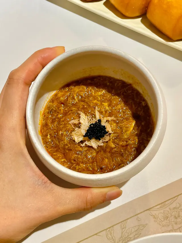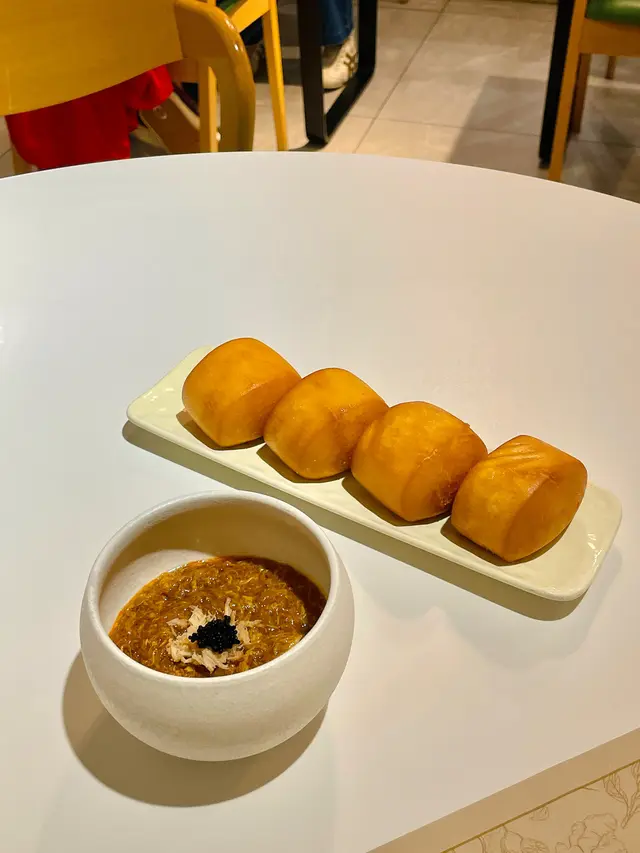 辣椒蟹肉醬配饅頭(單點$98),辣椒蟹肉醬表面鋪有黑魚籽,一整碗鮮拆蟹肉,配以採用多種香料製作辣椒醬,食落好惹味,炸饅頭口感外脆內軟,味道微甜。