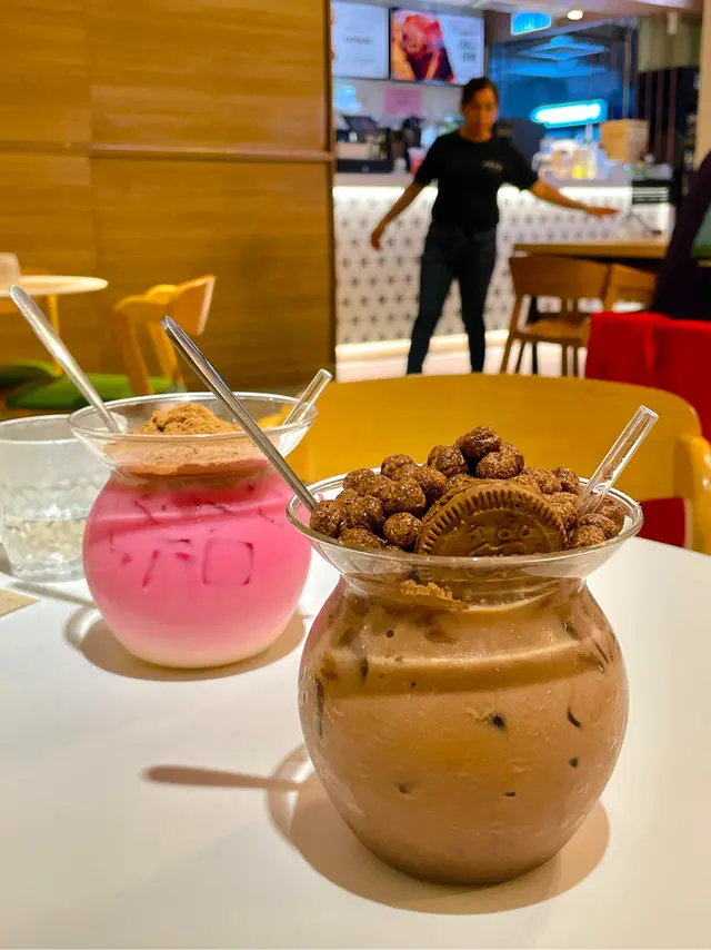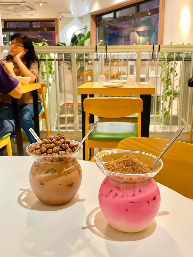 玫瑰露恐龍(單點$48),表面鋪滿美祿麥芽朱古力粉,採用玫瑰糖漿、煉奶、牛奶製作,飲落充滿玫瑰花花香味道。
