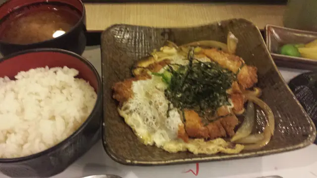 我叫左個日式滑蛋豬排飯定食, 味道唔錯, 豬排肉汁同醬汁都幾甜, 幾好味,