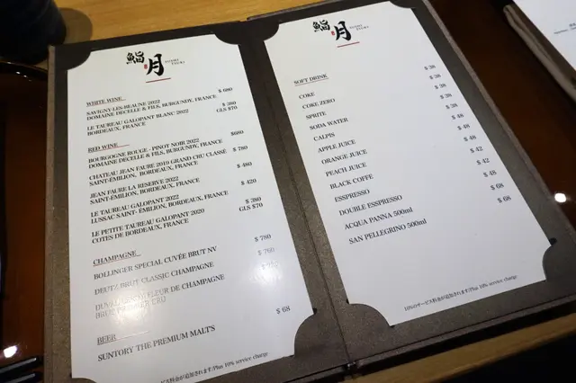 如果鍾意飲兩杯嘅客人,咁就啱晒,店家提供好多唔同產地嘅清酒,仲有紅白餐酒、香檳、啤酒,當然,為要照顧喺其他客人嘅需要,有提供果汁、汽水、啡茶……等等非酒精飲品。