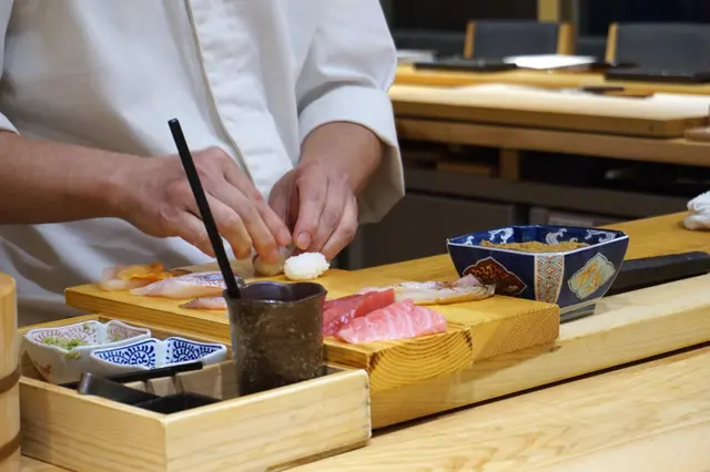 其實,由開始至今,已見到師傅不時切定啲刺身放晌砧板一旁之上,為做壽司作好準備,將切好嘅攤暖備用,更不時以手背去量吓溫度,盡量攤至最合適嘅溫度俾客人享用,甚為細心。