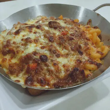 叫左兩個下午茶餐share。先泥芝士肉醬焗通粉,用鑊仔上枱,好霸氣咁款。好多芝士丫,仲拉到絲架~~~肉醬同醬汁混合晒,好腍滑,惹味得泥又無過咸,同通粉好夾~通粉比較淋身,如果可以彈牙啲就更好。