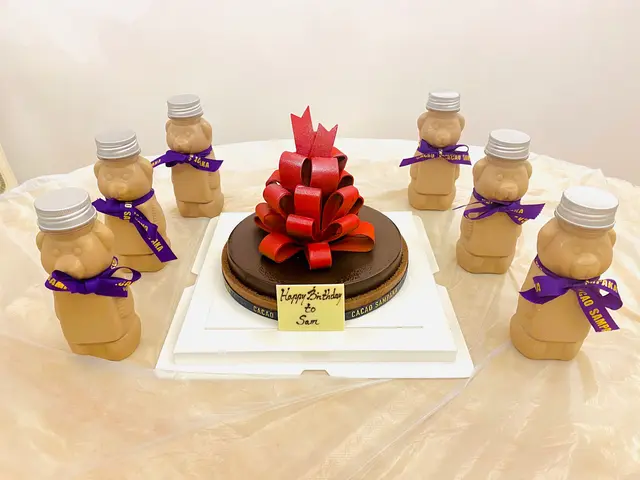 閒逛K11,被這間門口放有大bear bear熊的店舖吸引過去,一進門便看見這個Ribbon Chocolate絲帶蛋糕,外表十分吸睛,經店員介紹,原來絲帶部份,不是坊間店鋪所採用的普通硬掘掘糖膠,而是用64% 黑朱古力全人手製作的!正正老公生日,興緻勃勃便帶回家,品嘗後,發覺不太甜,蛋糕內薄荷軟心配黑朱古力慕絲,正!非常有層次感,完全是視覺與味蕾享受,令人回味再回味。
