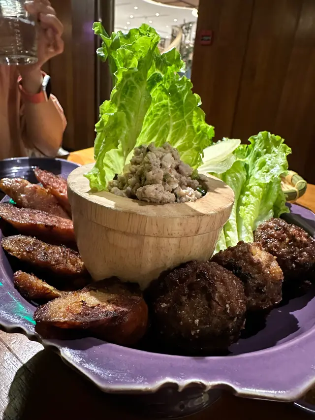 拼盤入面有2款腸同一個豬肉球咁既野,另外仲有生菜🥬包,一次過滿足幾個願望😂😂味道差既,都幾得意!不過都係有小小辣