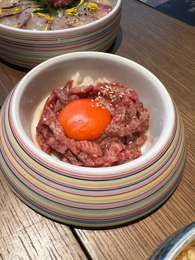 • 和牛他他:和牛配蛋黃🥚,撈勻食超滑溜!