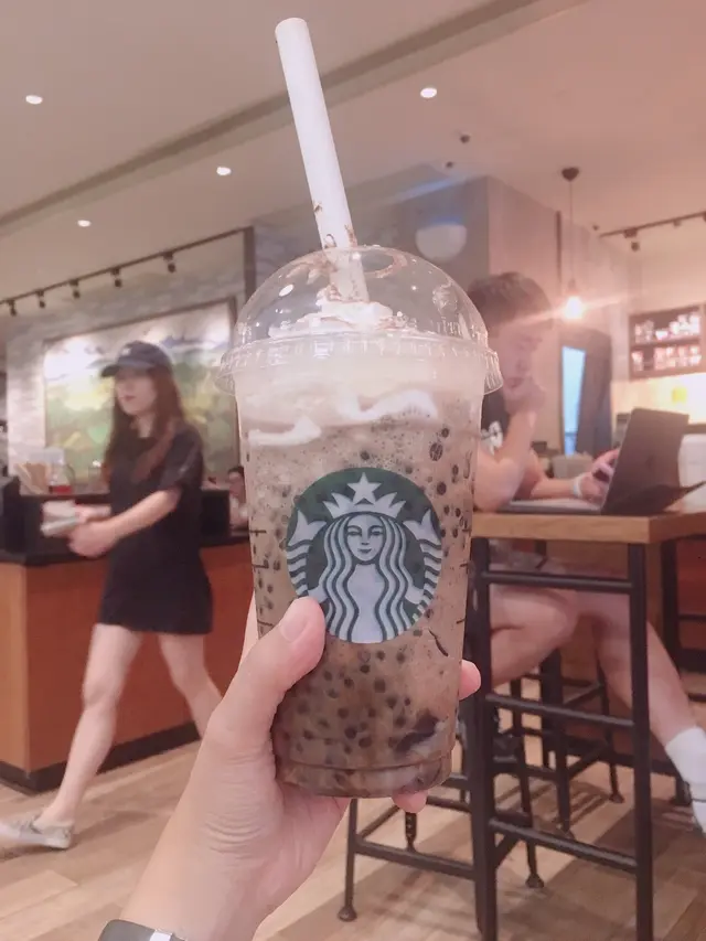最近成日聽朋友講「咖啡珠」,原來係Starbucks新推出既咖啡味珍珠❤️因爲最近來女生的特別日子,所以都想飲多D甜野,於是就叫左一杯「朱古力伯爵茶星冰樂 加 咖啡珠」了,雖然貴少少(total$50),不過見係Happy Sunday就無咩所謂啦🥰//
