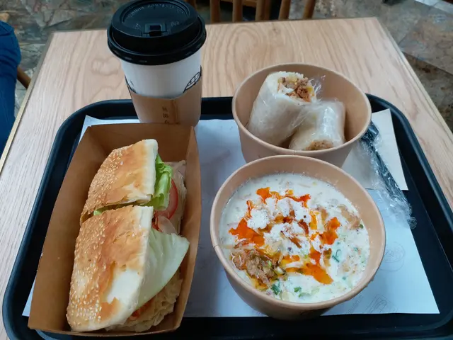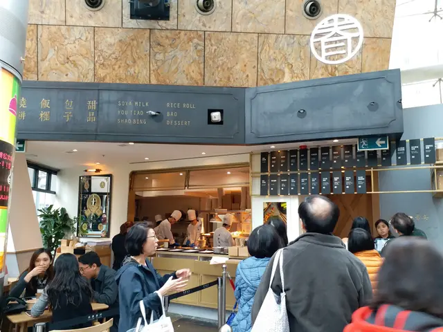 排隊付款後,找到一個小角落,慢慢等待職員預備台灣美食。