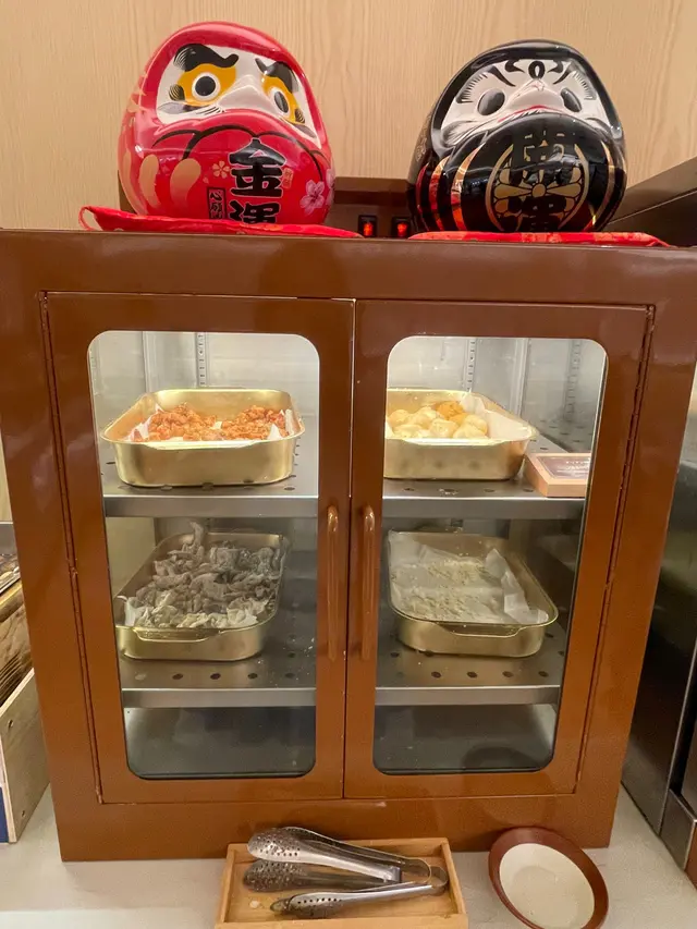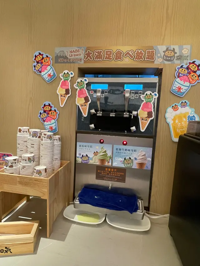火鍋配料除咗可以於手機下單之外,外面仲有多款蔬菜及丸類,夏日限定的海帶結、黑木耳、大丁苦瓜;仲有熟食及多款飲品,醬汁亦是自取,全部可以任飲任食,最吸引係全線牛気推出馬來西亞榴槤甜品系列,一定要留肚食甜品
