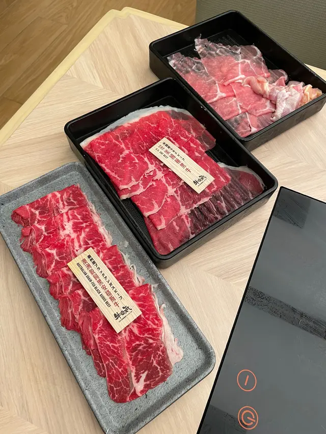 我哋叫咗人氣之選LV4澳洲穀飼黑安格斯牛+SRF美國極黑牛+海鮮放題,任飲任食90分鐘,午市惠顧仲可以每位減40元,湯底叫咗北海道昆布清湯&月見壽喜燒。