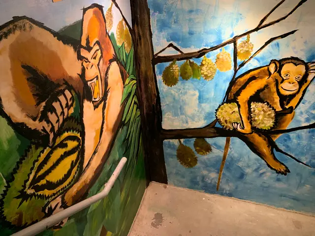 沿樓梯上見到畫有不同榴槤、動物既玩味塗鴉。