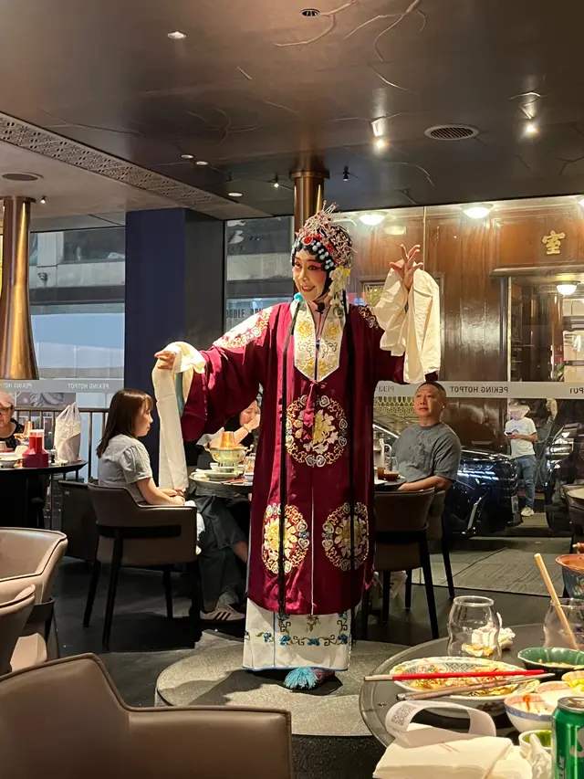 氛圍與環境:滿分推介!餐廳裝潢充滿老北京四合院風情,中國風濃厚,坐大堂可欣賞免費京劇表演(晚上兩場,約 15-20 分鐘),邊吃邊看超有沉浸感。用戶形容「好似飛咗一轉北京,夢回紫禁城」。社交平台打卡率高,特別是銅爐暖鍋(一人一鍋,清朝康熙風格手工打造)。