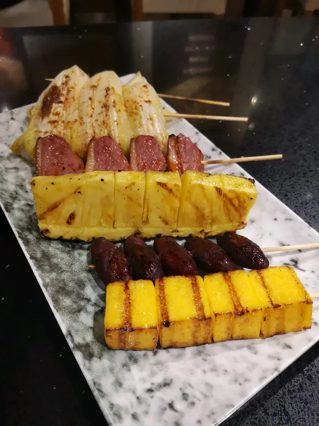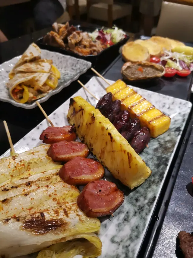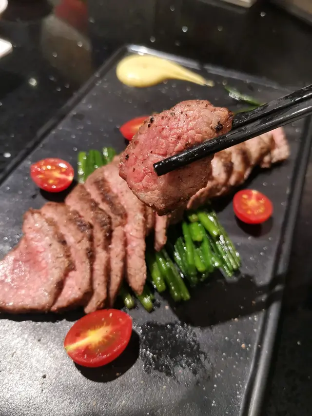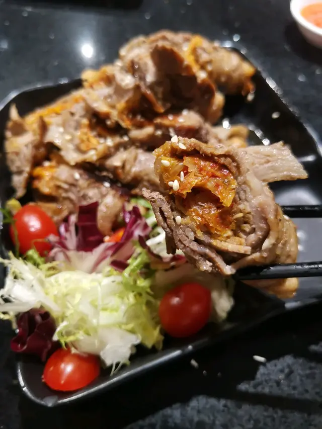 我們還點了菠蘿、蕃薯仔、娃娃菜、鴨胸、厚燒玉子、泡菜肥牛卷,其中肥牛卷配的是韓式的調味醬,泡菜味很強,所以會中和一下肥牛的油膩,而且非常大碟,cp值挺高。