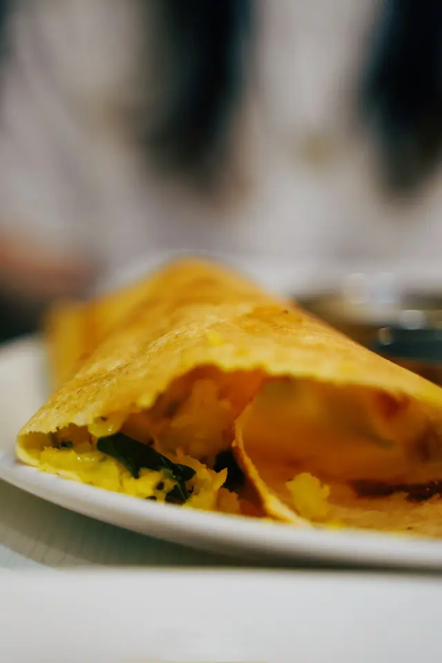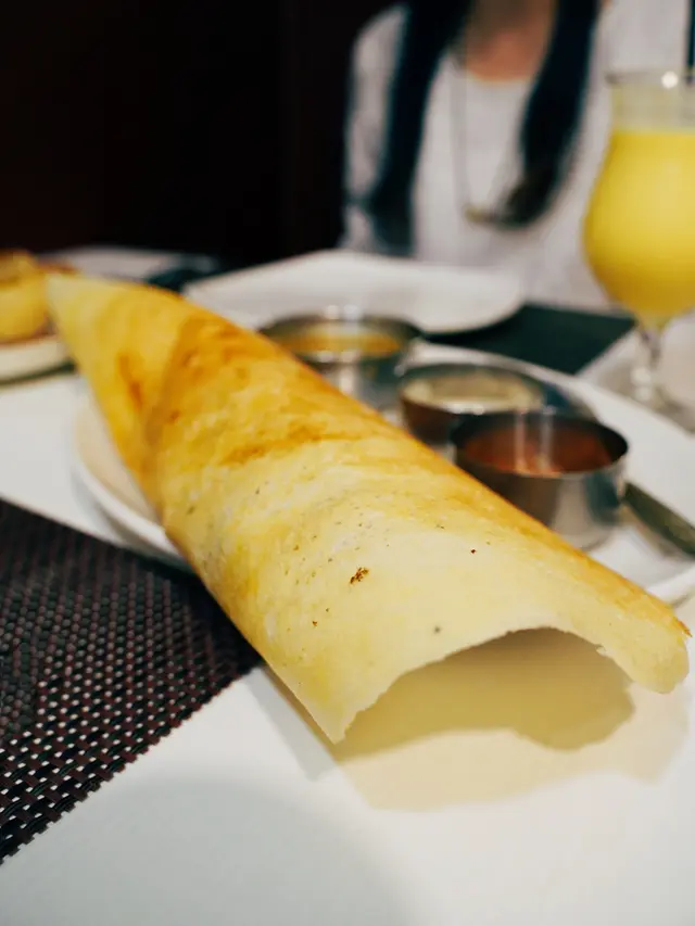 呢個一上枱不得了,好大塊卷起咗嘅薄餅,好薄身,裏面都有配料架,滿滿嘅咖喱薯仔,就咁食已經好好食✨佢旁邊仲配埋三款唔同嘅醬汁俾你點,三款醬都好好食👍🏻