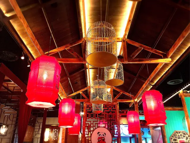 門面已經充滿中國風,裡面滿滿的古典裝潢,一抬頭就是大紅燈籠,很有回到了古代中國繁華大街的感覺。