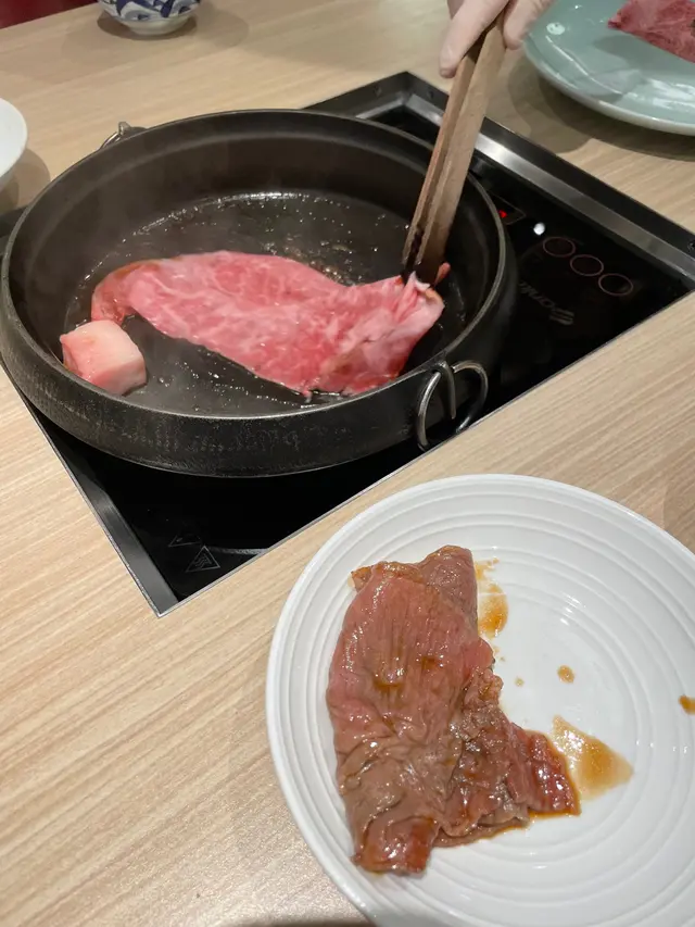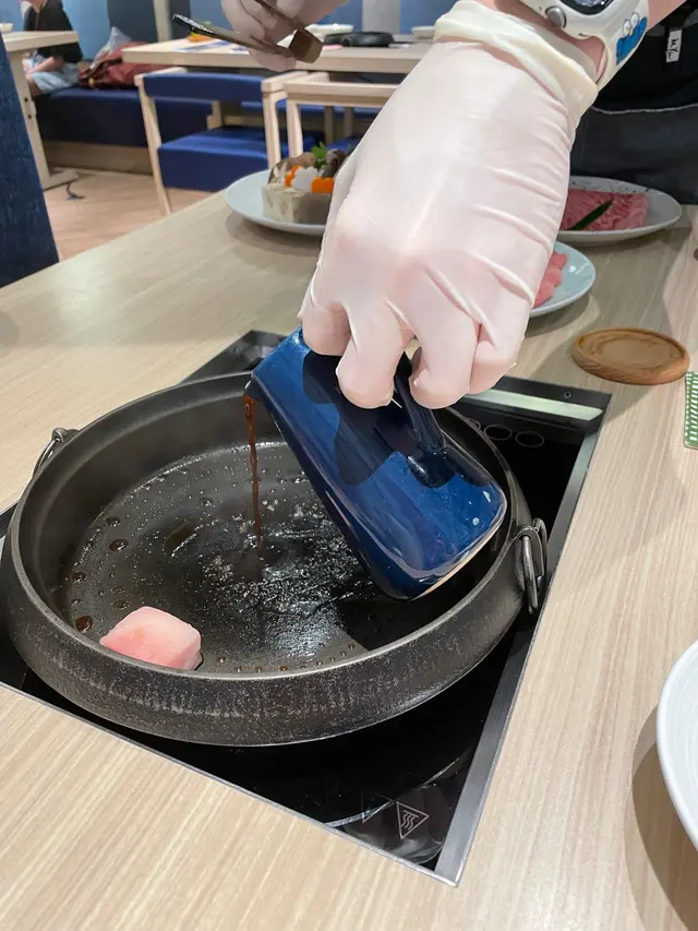 開始準備主食,店員會親自烹調,咁就保證到和牛唔會overcook影響口感, 先用牛脂開爐, 再加壽喜燒汁,未落和牛盲已經聞到香味