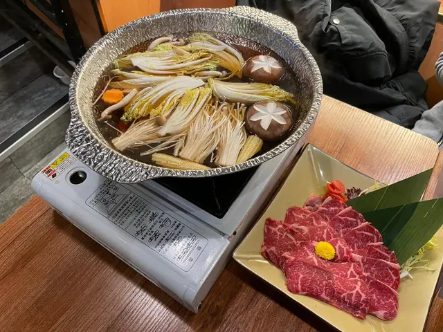 店員會幫忙將蔬菜、冬菇、粟米芯等放入壽喜燒鍋入面😋🌽🥬🍄