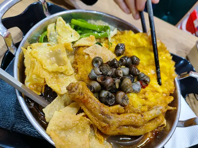 朋友就要一個嗦螺螄爆炒田螺撈螺絲粉$53配BB辣