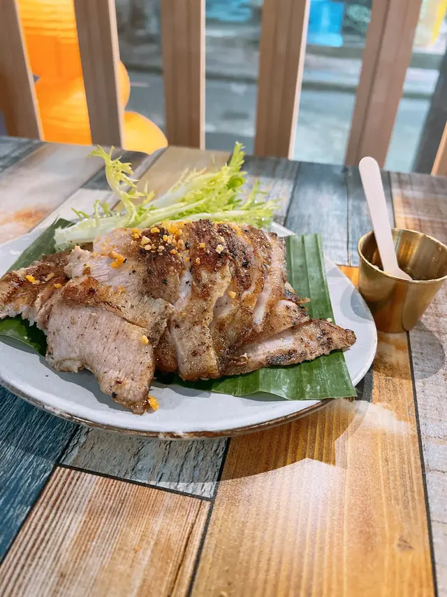 豬頸肉肉質爽口咬落彈牙 ,豬頸肉經炭烤嘅烹調方法,帶點焦焦味搭配上醬汁 ,風味同口感特別有feel
