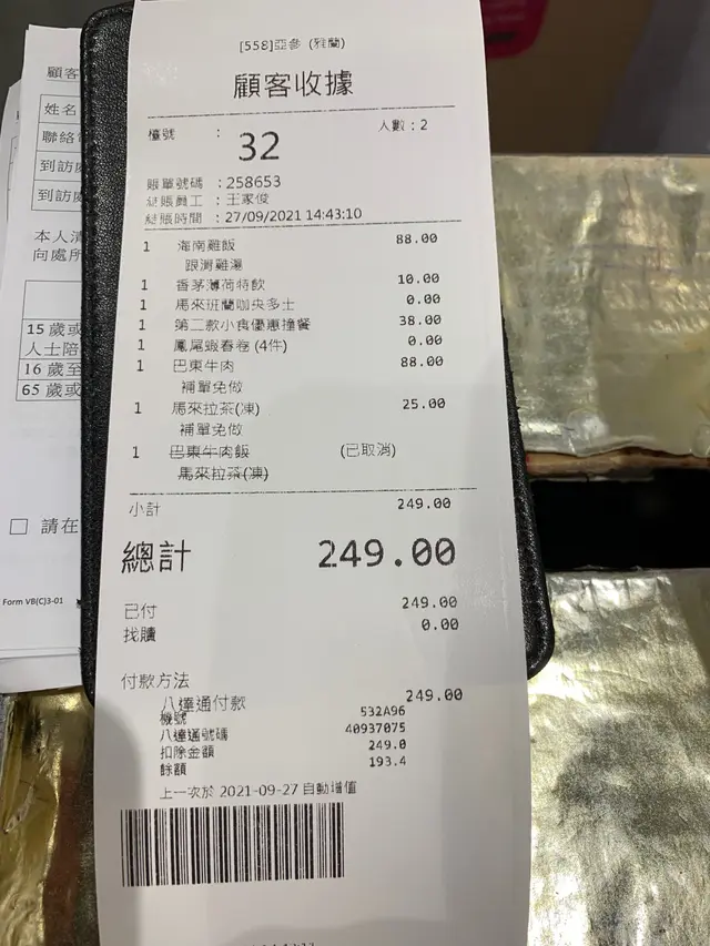 正宗海南雞飯 kiub等级22021-09-27267 浏览 关注 今天一起吃午飯的同事突然說想食海南雞飯,於是決定試吓這間頗有名氣海南雞飯店。店鋪位於旺角雅蘭商場地庫,門面及店舖面積也不大,但座位都算寬躺。1店舖門面不大,位於地庫。我們叫了海南雞飯、巴東牛肉、和兩個優惠小食。1分量十足👍$88雞件比一般店份量多很多,肉汁嫩滑,飯和湯味道偏濃郁,愛濃味的會十分喜歡1和餐牌的賣相有分別,有很多醬汁,有些似咖喱牛腩,偏辣味。1加$38可選兩款優惠小食,這個性價比10分高,鳳尾蝦春卷略嫌油膩,馬來斑斕咖央多士,麵包香脆配合咖央果醬加牛油,味道出色。整體食物還可以,愛吃正宗海南雞飯可以一試。以上食记乃用户个人意见 , 并不代表OpenRice之观点。2分享正宗海南雞飯 亞參雞飯 https://s.openrice.com/QrLT0TuSzW0检举 张贴 评分4味道4环境4服务4卫生3抵食推介美食海南雞飯$88用餐日期2021-09-27用餐途径堂食人均消费$120 (午餐)