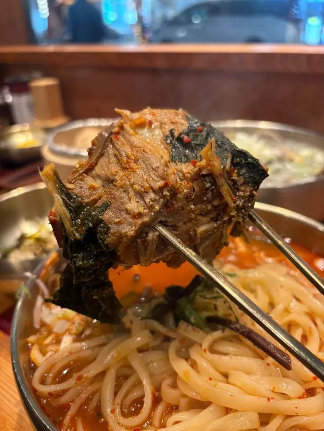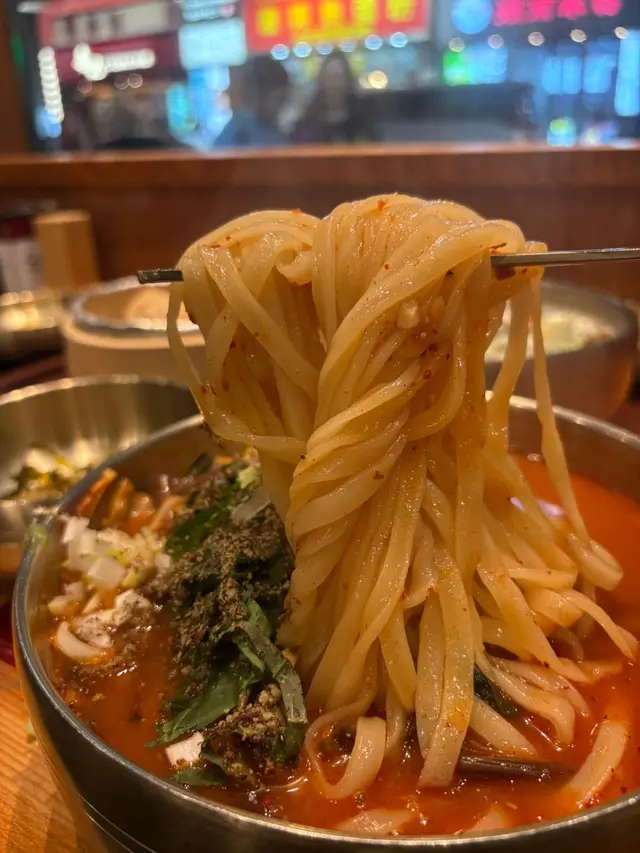 一上枱就香氣撲鼻,湯底係濃郁豬骨湯加上帶辣度嘅韓式醬料,辣得嚟唔嗆喉,啱啱好夠暖胃。豬脊骨炆得腍滑,肉味重,伴麵食特別滿足。麵身煙韌彈牙,浸耐啲都唔會爛,整體平衡得好好。
