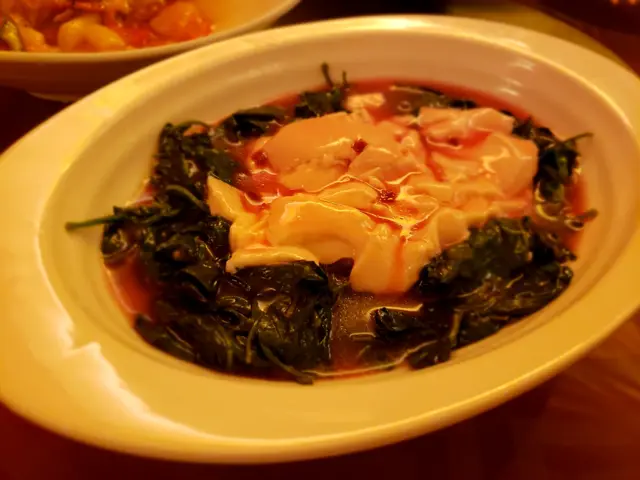 枸杞豆腐配紅菜頭汁,枸杞本身有啲苦,豆腐就好滑嘅,整體就普通啦。