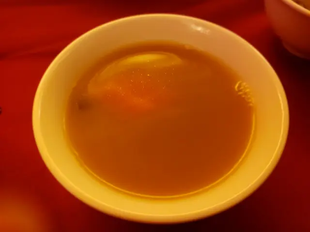 跟住係福袋冬蔭功湯,福袋面有啲雜菜絲咁,湯都不錯。有長老唔食得辣佢哋即刻換咗個唔辣嘅紅菜頭湯,好貼心。