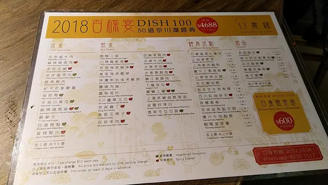當中有北京菜、四川菜同上海菜既食物,雖然話係100碟,不過其實只有40多款,當中有涼菜﹑熱食﹑包點﹑甜品等。