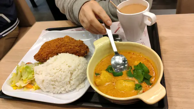 我媽就食南洋咖喱吉列豬扒飯,熱奶茶。豬扒係ok嘅,不過個薯仔就普通啦,入面仲有一塊唔知咩事口感好奇怪。不過總體個飯係好食嘅。
